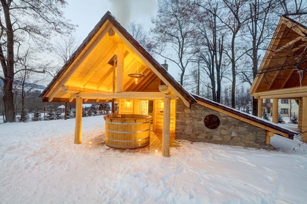 Domek składa się z salonu, pełniącego funkcję sypialni, wyposażonego w narożnik oraz jednoosobową dostawkę, przestronną komodę, szafę, a także telewizor. Do dyspozycji gości jest duża łazienka oraz kuchnia z jadalnią wyposażona w lodówkę, piekarnik, płytę indukcyjną, mikrofalówkę, jak również zmywarkę. Domek dysponuje miejscem dla 3 trzech osób.